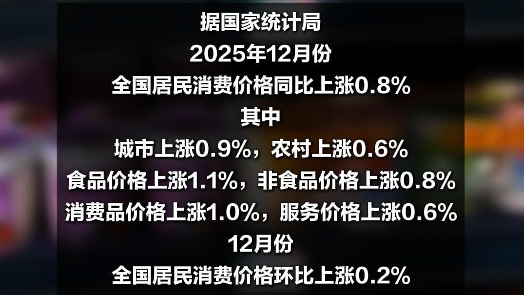 國家統(tǒng)計局:2025年12月份居民消費價格同比上漲0.8%
