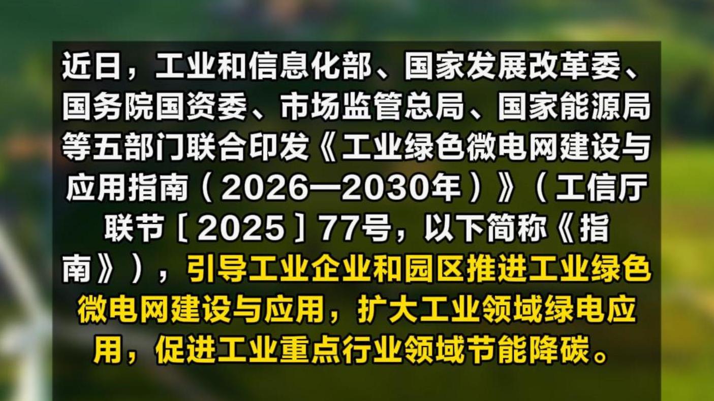 工信部等五部門聯(lián)合印發(fā)《工業(yè)綠色微電網(wǎng)建設(shè)與應(yīng)用指南(2026—2030年)》