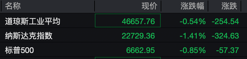 受此影響,美股集體低開,截至發(fā)稿,納斯達(dá)克指數(shù)跌幅擴(kuò)大至1.41%。
