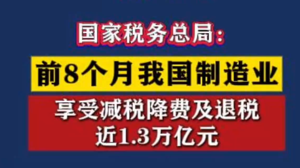 前8個月我國制造業(yè)享受減稅降費及退稅近1.3萬億元