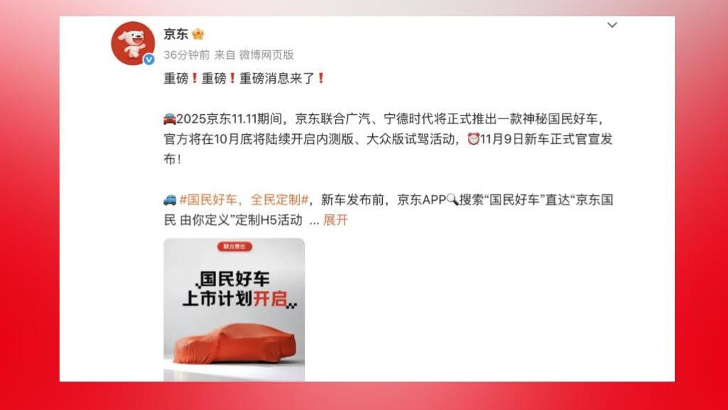 京東:將發(fā)布“國(guó)民好車(chē)” 知情人士:或?yàn)閺V汽埃安換電車(chē)型