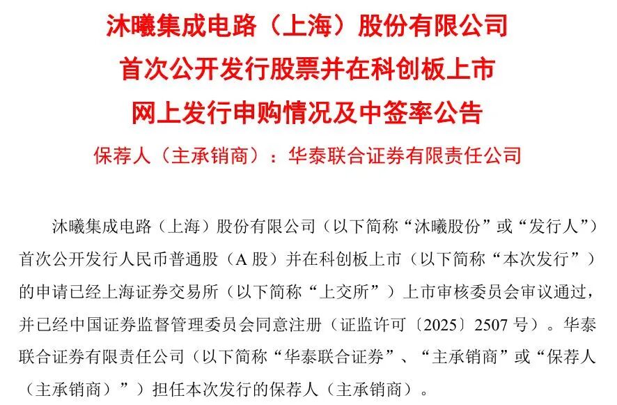 12月7日晚間,國產(chǎn)GPU廠商沐曦股份發(fā)布網(wǎng)上發(fā)行申購情況及中簽率公告。