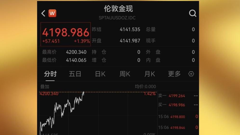 史上首次!現(xiàn)貨黃金突破4200美元!